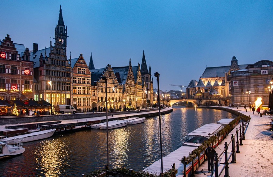 Bruges combina canales románticos, arquitectura medieval y una intensa vida cultural durante diciembre. Sus plazas y calles se llenan de luces, y los mercados navideños ofrecen chocolates, cervezas locales y regalos artesanales.